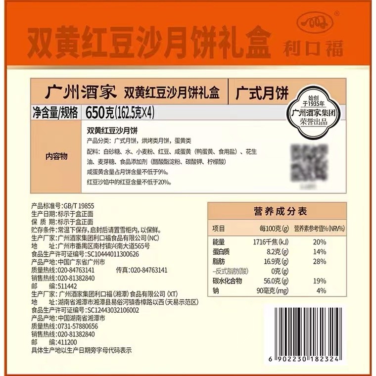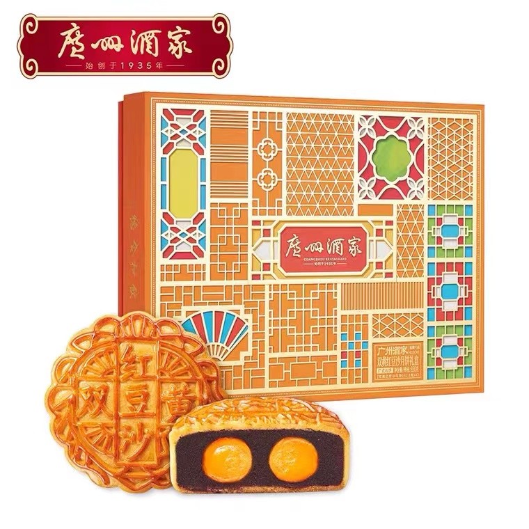 广州酒家双黄红豆沙月饼礼盒650g