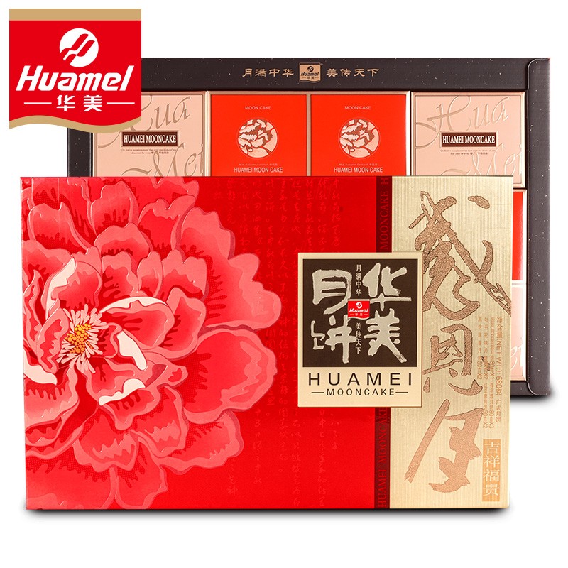华美感恩月吉祥富贵月饼礼盒680g(红色传统版)