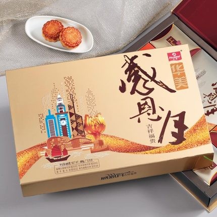 华美月饼感恩月吉祥福贵月饼680g(金色版)