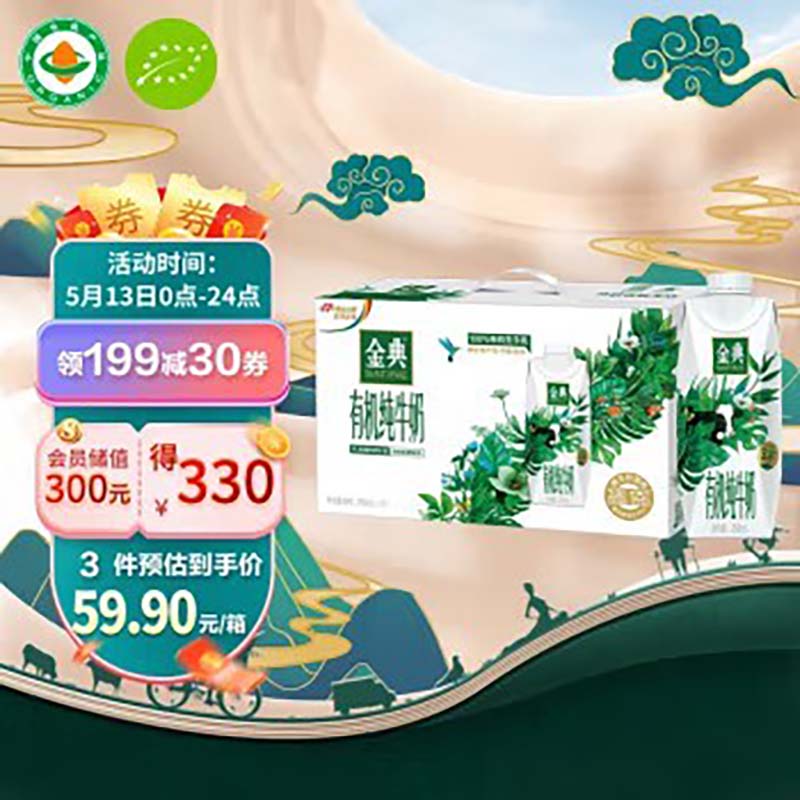 伊利 金典有机全脂纯牛奶250ml*10盒/箱(梦幻盖)3.8g乳蛋白 原生高钙 礼盒装 早餐伴侣