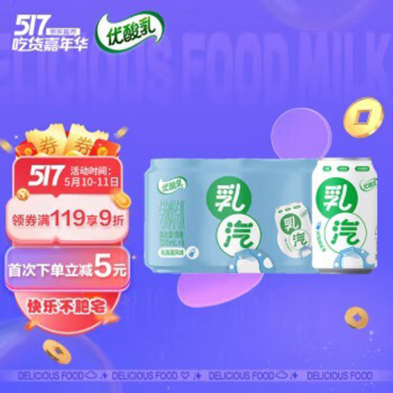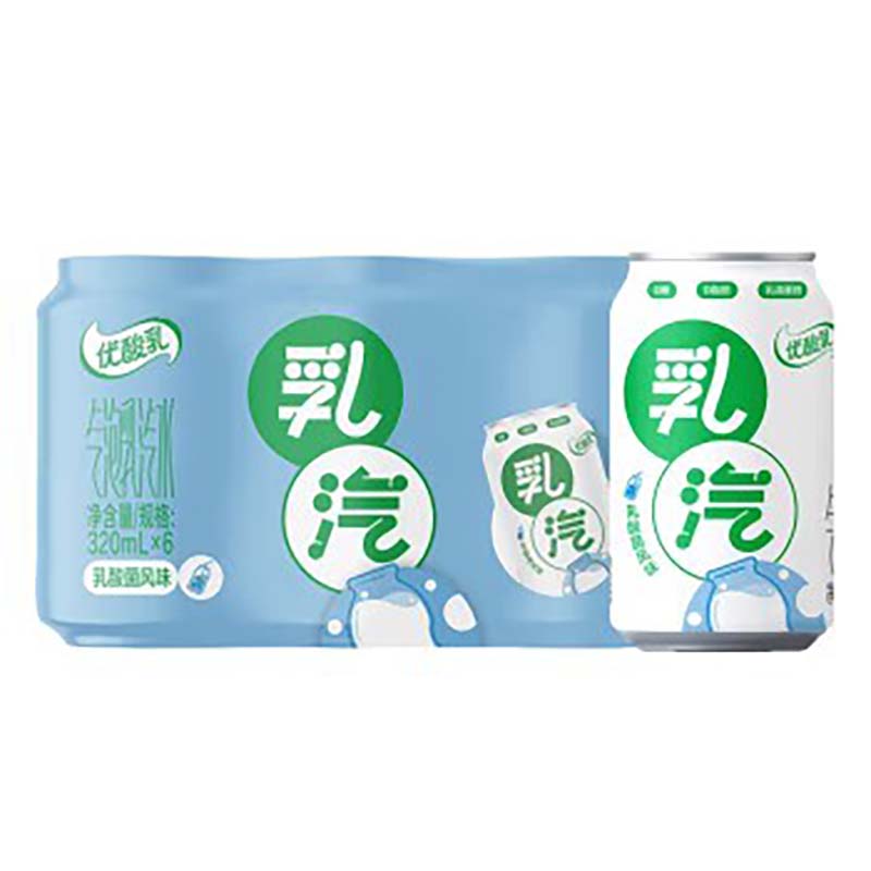 伊利 优酸乳乳汽 320ml*6罐(碳酸汽水) 苏打气泡水乳饮料 特调乳酸菌风味 0添加蔗糖 0脂肪 礼盒装