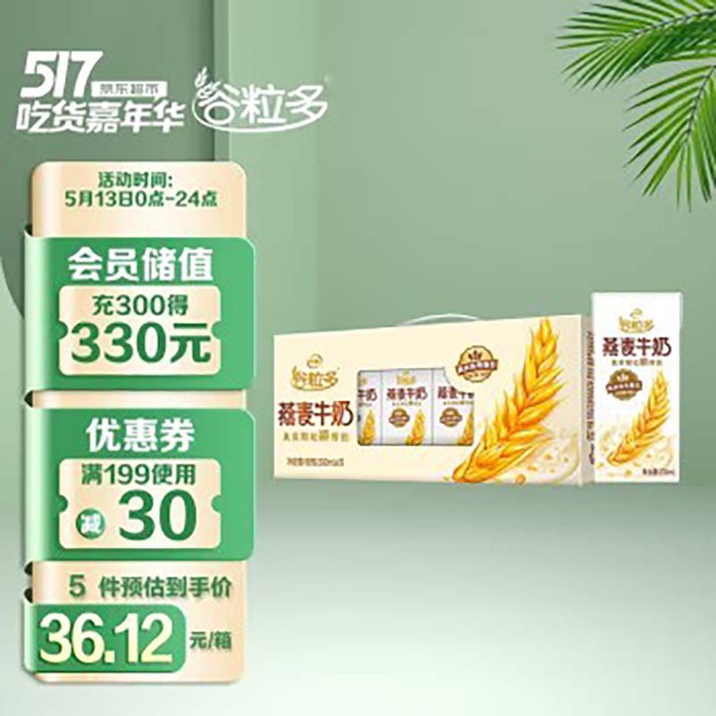 伊利 谷粒多 燕麦牛奶200ml*12盒/箱 精选进口澳洲燕麦 营养早餐伴侣 礼盒装