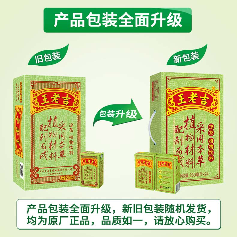 王老吉 凉茶 植物饮料 绿盒装清凉茶饮料 250ml*24盒 整箱水饮 中华老字号(新老包装随机发)