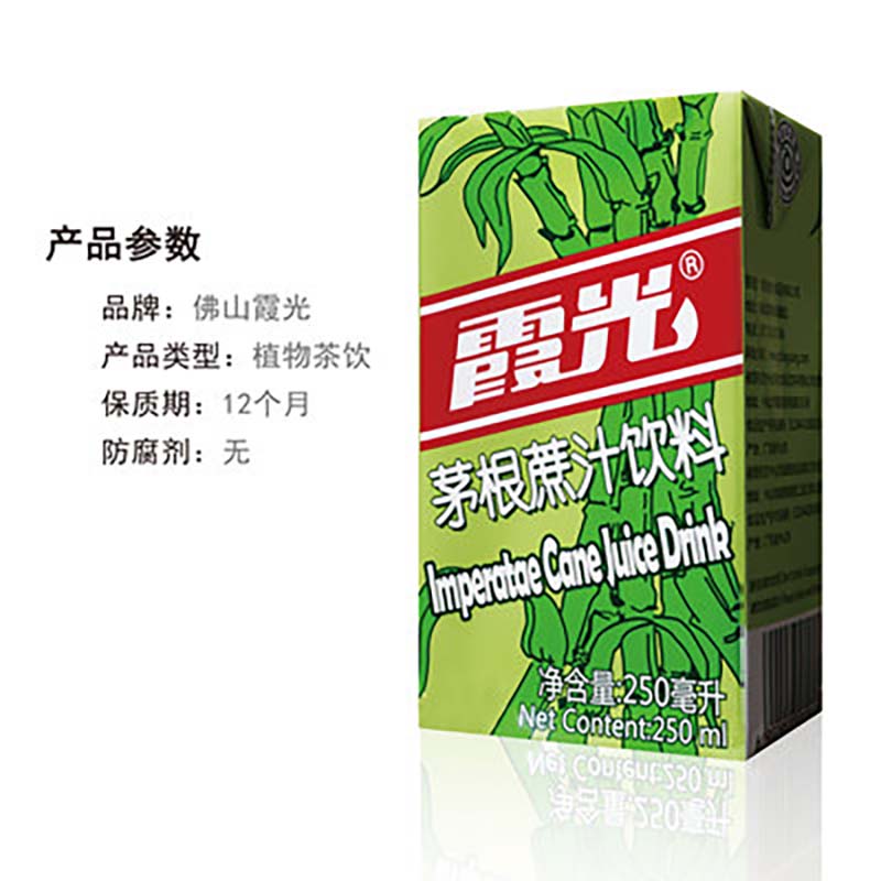 品牌:霞光 系列:茅根蔗汁饮料250mL 单瓶净含量:250ml 保质期:360天