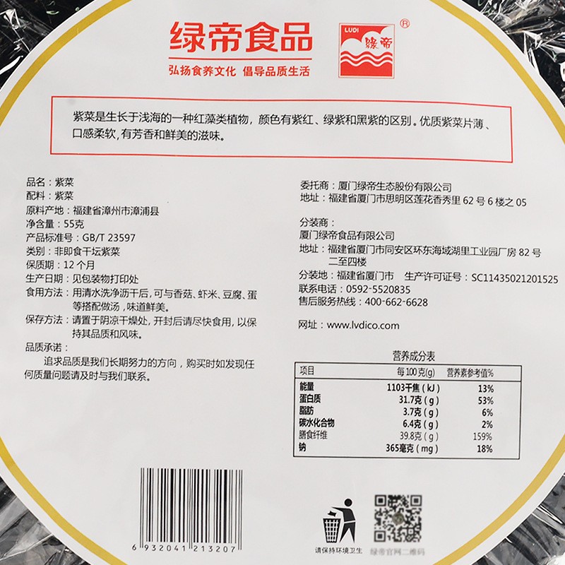 绿帝紫菜55g 头水紫菜海笞 福建特产海产品海鲜干货