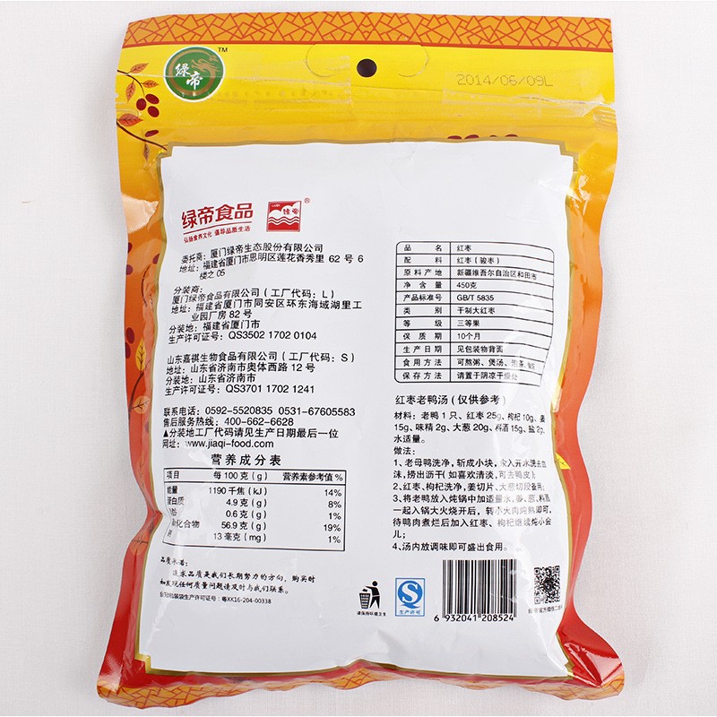 品牌:绿帝 种类:红枣 规格:450克
