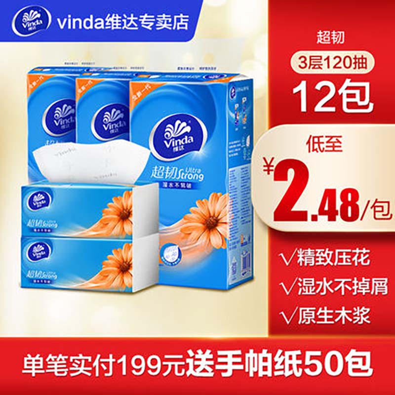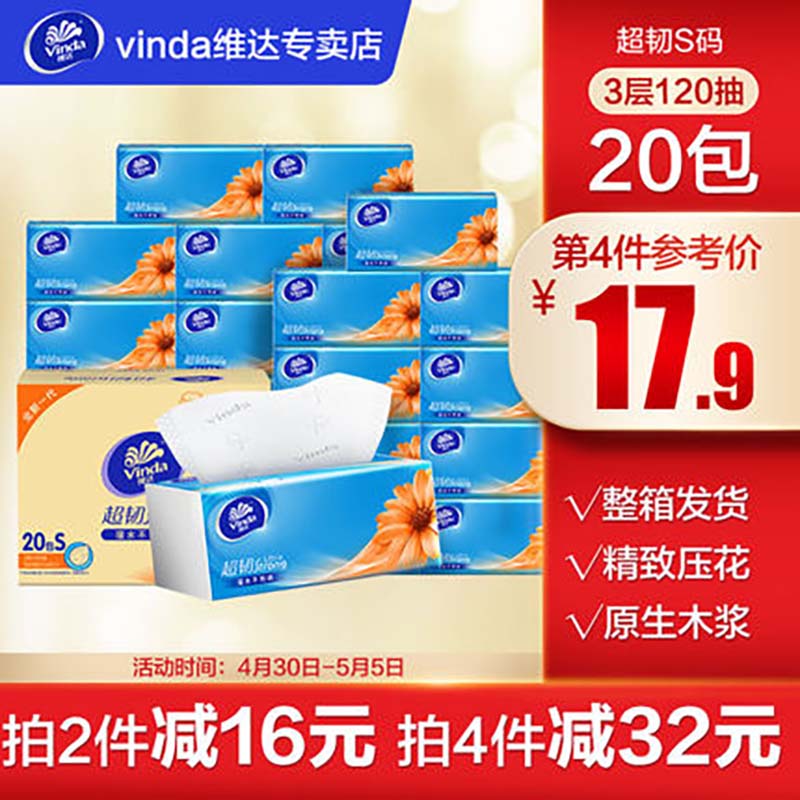 品牌:Vinda/维达 层数:3层 包装规格:4包 12包 20包 面巾纸种类:软包装面巾纸