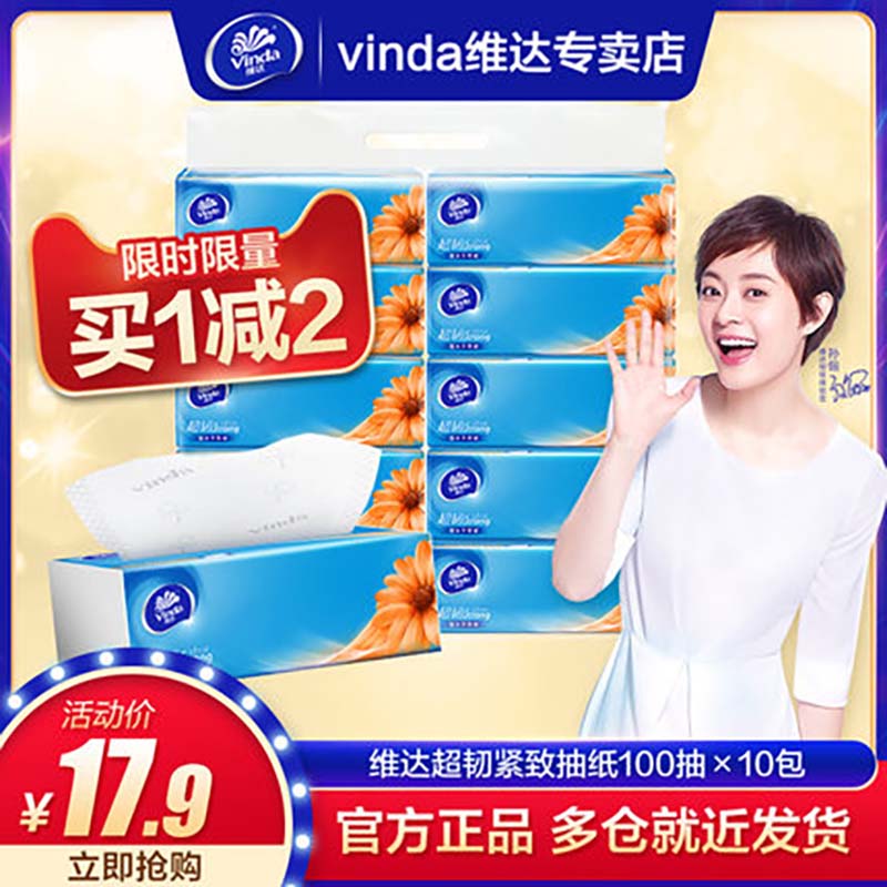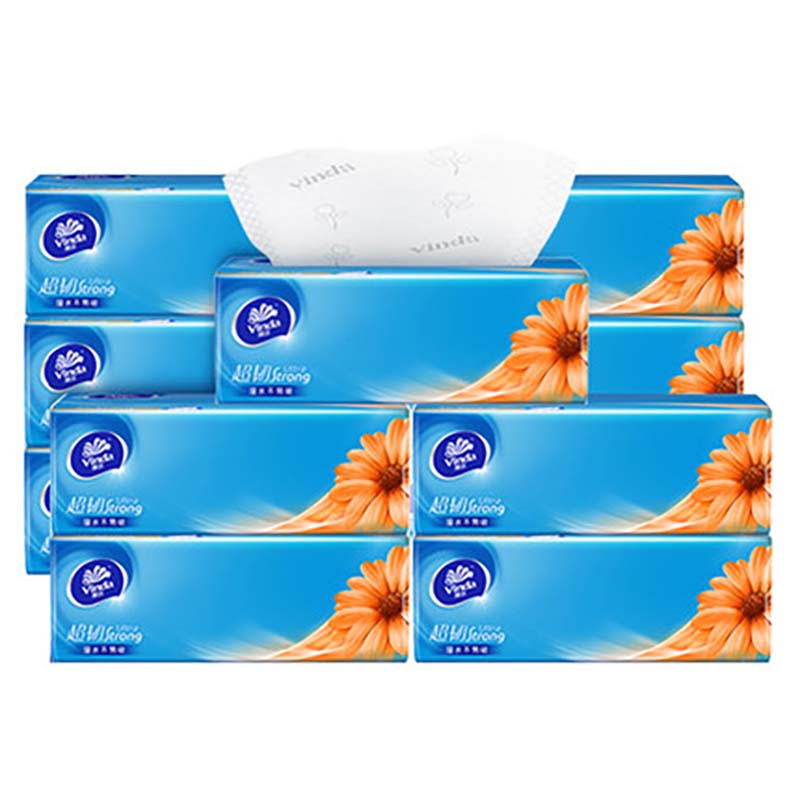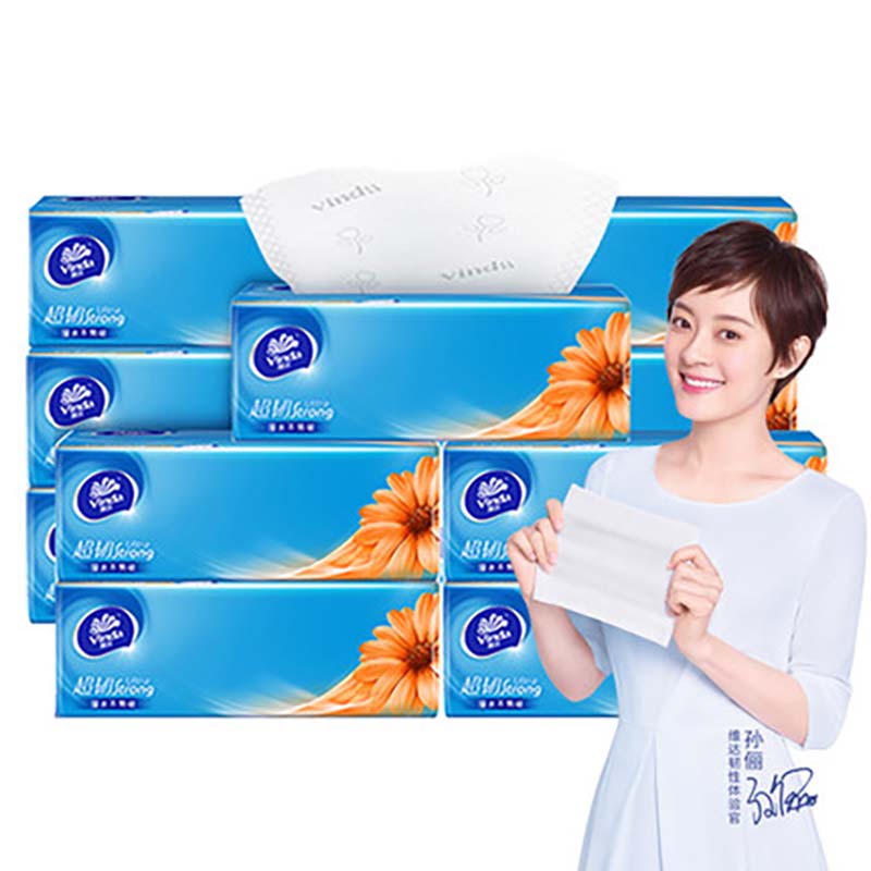 维达纸巾抽纸超韧3层100抽10包餐巾纸家用实惠装卫生纸面巾纸T1
