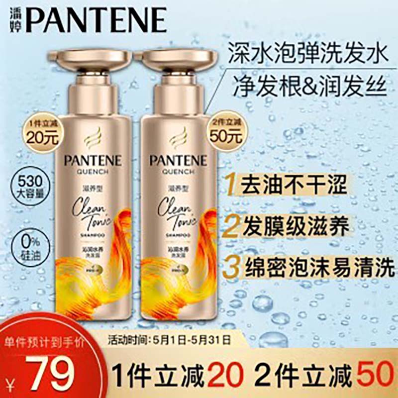 潘婷深水泡弹非深水炮弹自营沁润水养氨基酸洗发水-滋养型530ml(修护补水 长效保湿 无硅油 蓬松 去油)