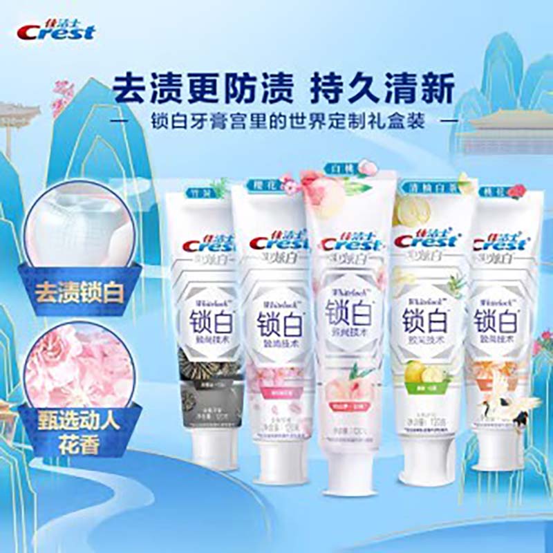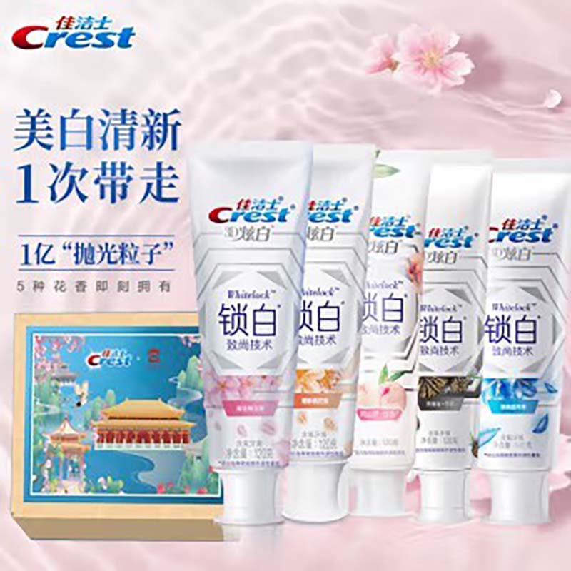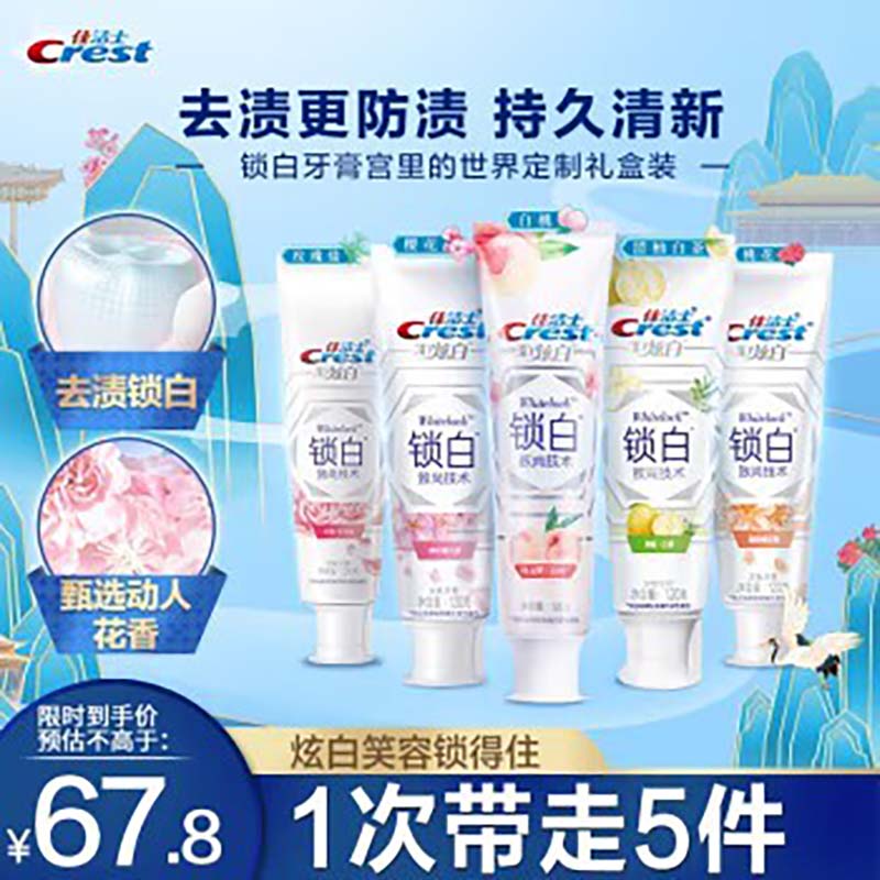 佳洁士香氛锁白牙膏5支美白牙膏去黄(樱花+桃花+清柚白茶+白桃+玫瑰盐)含氟防蛀520礼物送女友送男友共600g