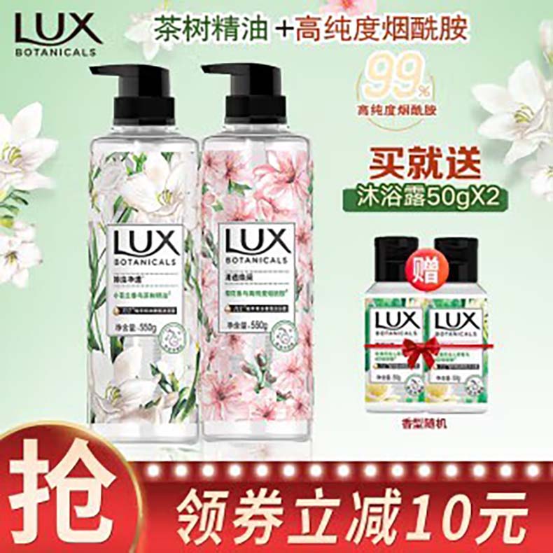 爆卖】力士(LUX)植萃精油香氛沐浴露套装小苍兰550g+樱花550g送50gx2 迪丽热巴同款焕活元气美肌家庭装环保