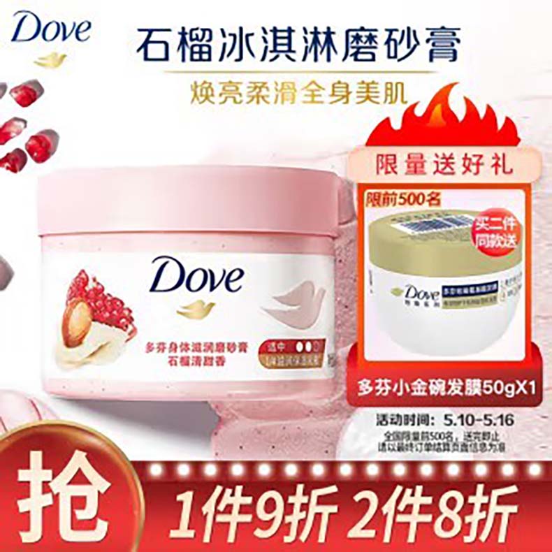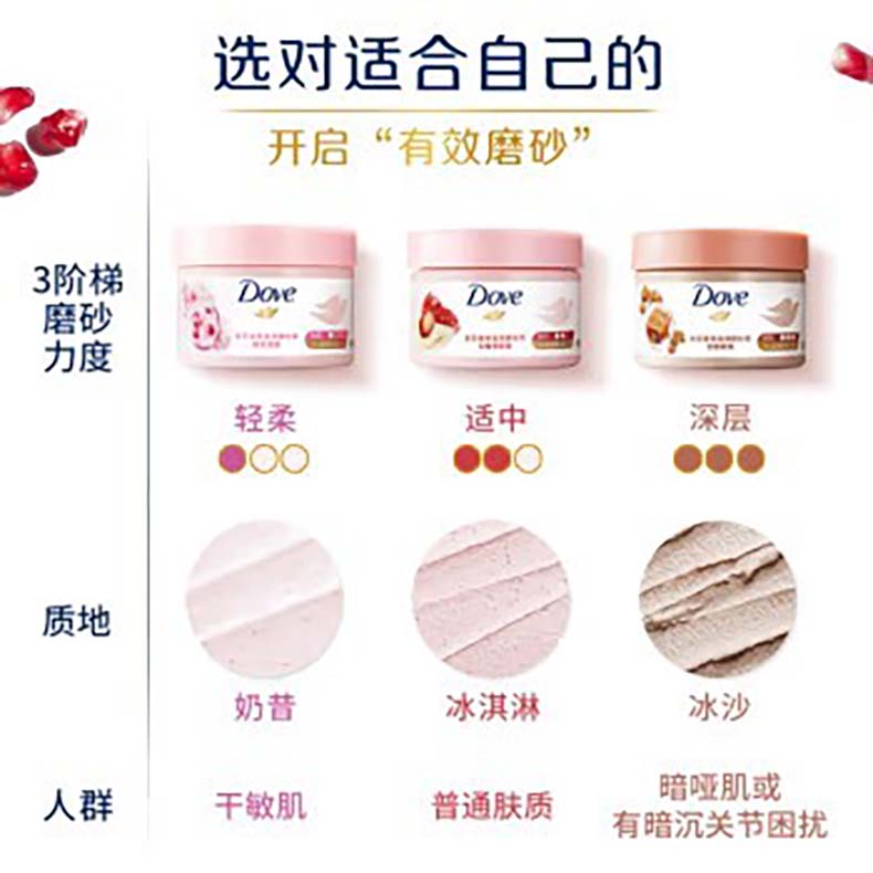多芬(Dove)身体滋润磨砂膏乳霜298g 石榴籽+乳木果清甜奶香 温和去角质鸡皮持久留香(新老包装随机发货)
