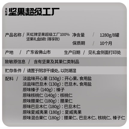 天虹牌纯坚果罐装礼盒1280g开心果混合果仁年货礼包