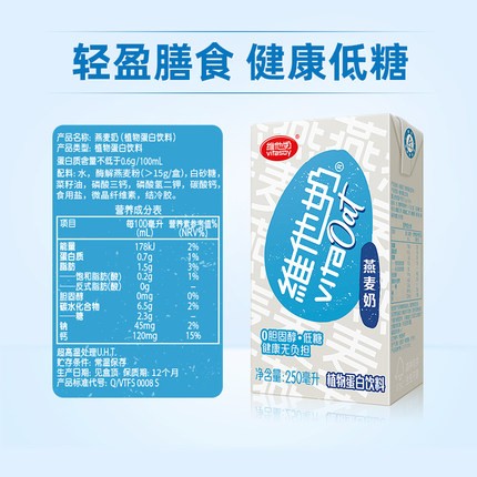 产地:中国大陆 口味:燕麦奶250ml*24盒 单瓶净含量:250ml 保质期:270天