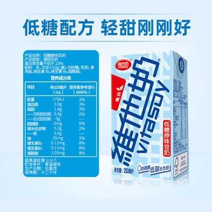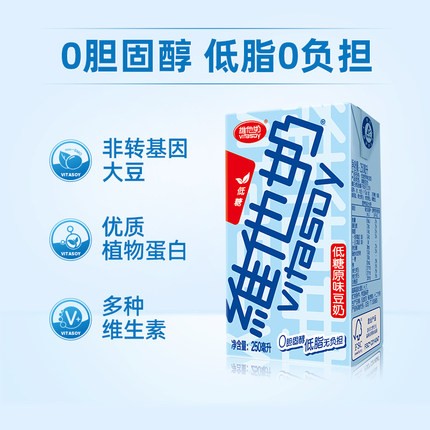 维他奶低糖原味豆奶250mL*24盒 即饮植物奶饮料 整箱 囤货