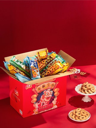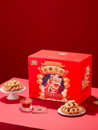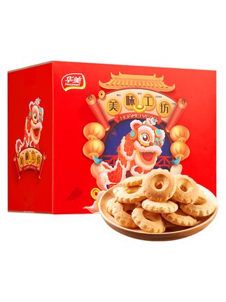 华美曲奇饼干1800g零食手提装网红休闲零食年货送礼礼盒