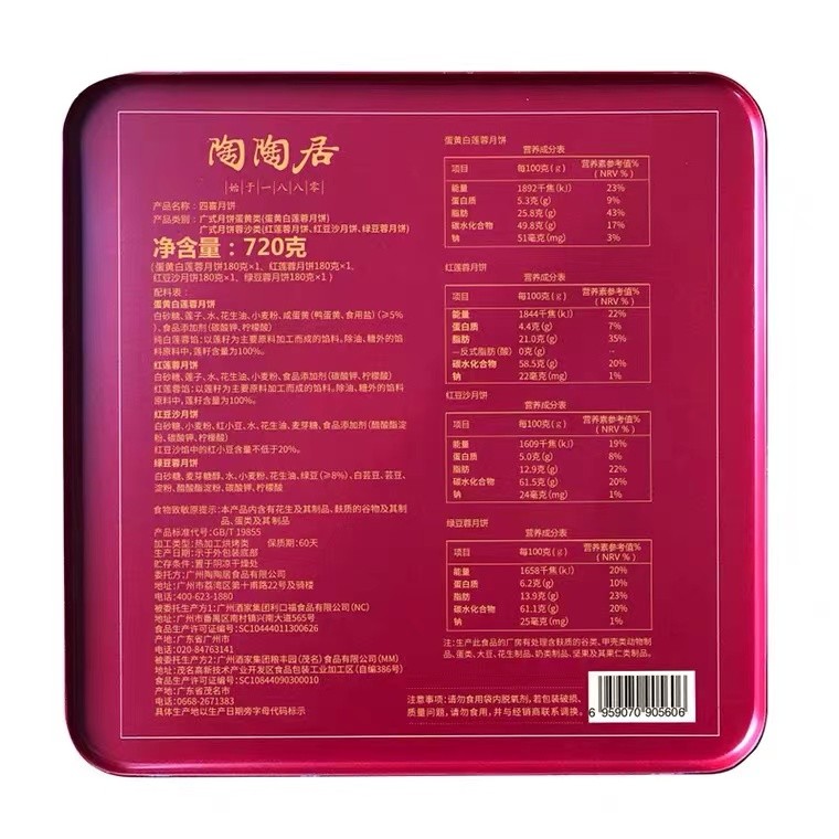 陶陶居四喜月饼720g